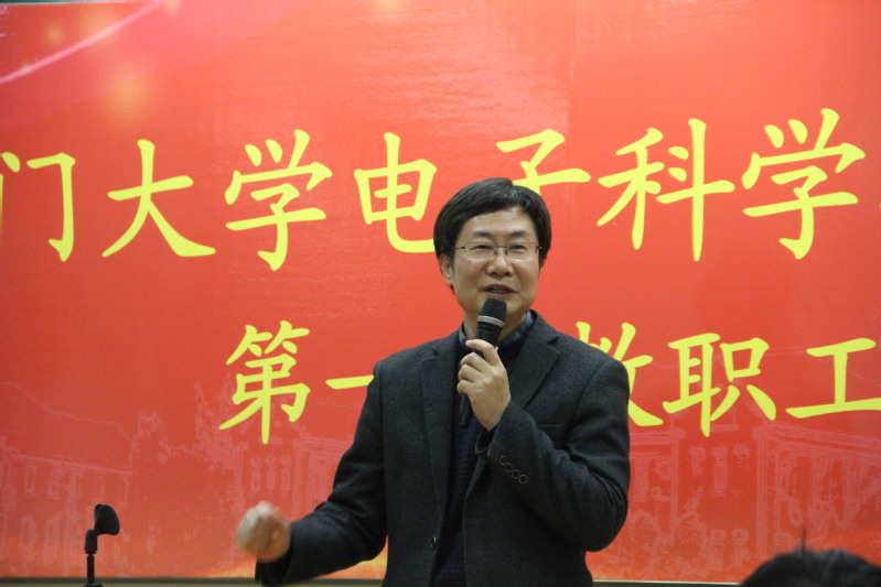 陈忠在会上做了《院情汇报》,对学院基本情况、未来建设与发展思路进行了阐述和解读,并向大家介绍了学校最新的绩效考核方案。董俊做《2018年电子科学与技术学院本科教学计划》报告。张保平做《2018年电子科学与技术学院科研工作及研究生教育》、《基金动员》报告。
