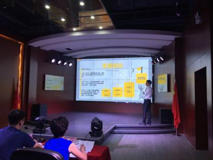 图3大赛复赛现场(厦门北站创业大街)团队负责人皮钱超进行项目成果展示