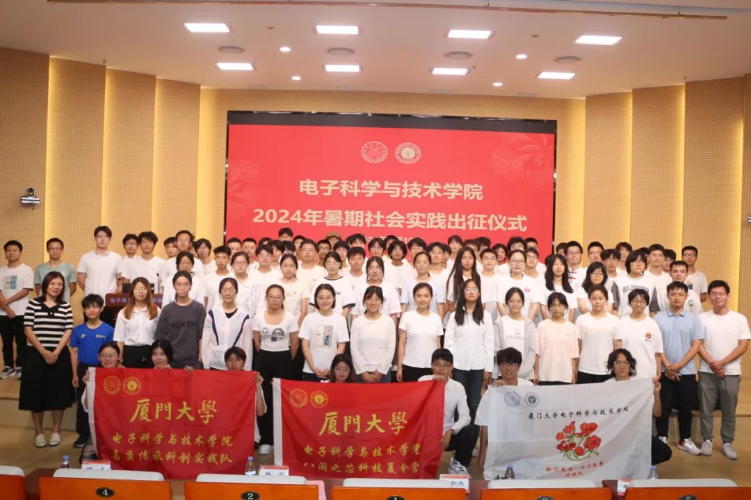 为全面贯彻落实党的二十大精神,学习贯彻习近平总书记五四青年节对全国广大青年寄语精神,增强学生服务地方发展的实践能力,引导和帮助广大青年学生在与现实相结合的“大思政课”中“受教育、长才干、作贡献”,争做有理想、敢担当、能吃苦、肯奋斗的新时代好青年,7月16日,电子科学与技术学院暑期社会实践出征仪式在千亿体育官方网站翔安校区南存钿楼举行。学院党委副书记林蕊、团委书记胡凡、厦门市翔安区香山派出所副所长朱昆尉、辅导员黄积杰及全体实践队员参加本次活动。仪式由学院实践部成员张洪坤主持。
