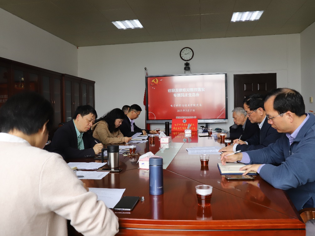 3月17日上午,电子科学与技术学院党委召开巡察反馈意见整改落实专题民主生活会。校党委第二巡察组组长叶鹏飞、基层党建联络员洪永强到会指导,电子科学与技术学院党政领导班子成员参加会议,工会主席、院办负责人、党务秘书、团委书记等有关同志按要求列席会议。会议由学院党委书记吴国瑛主持。