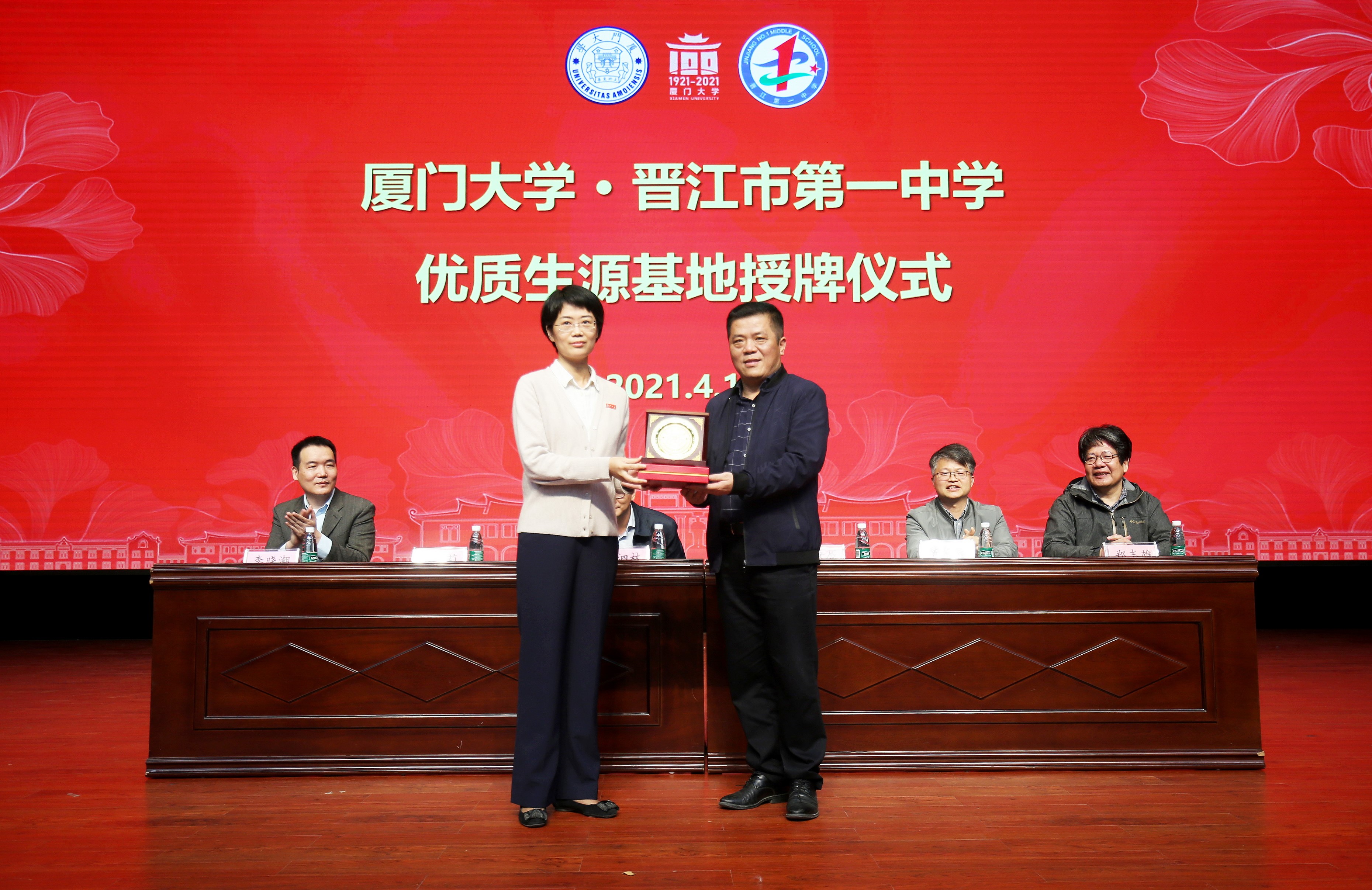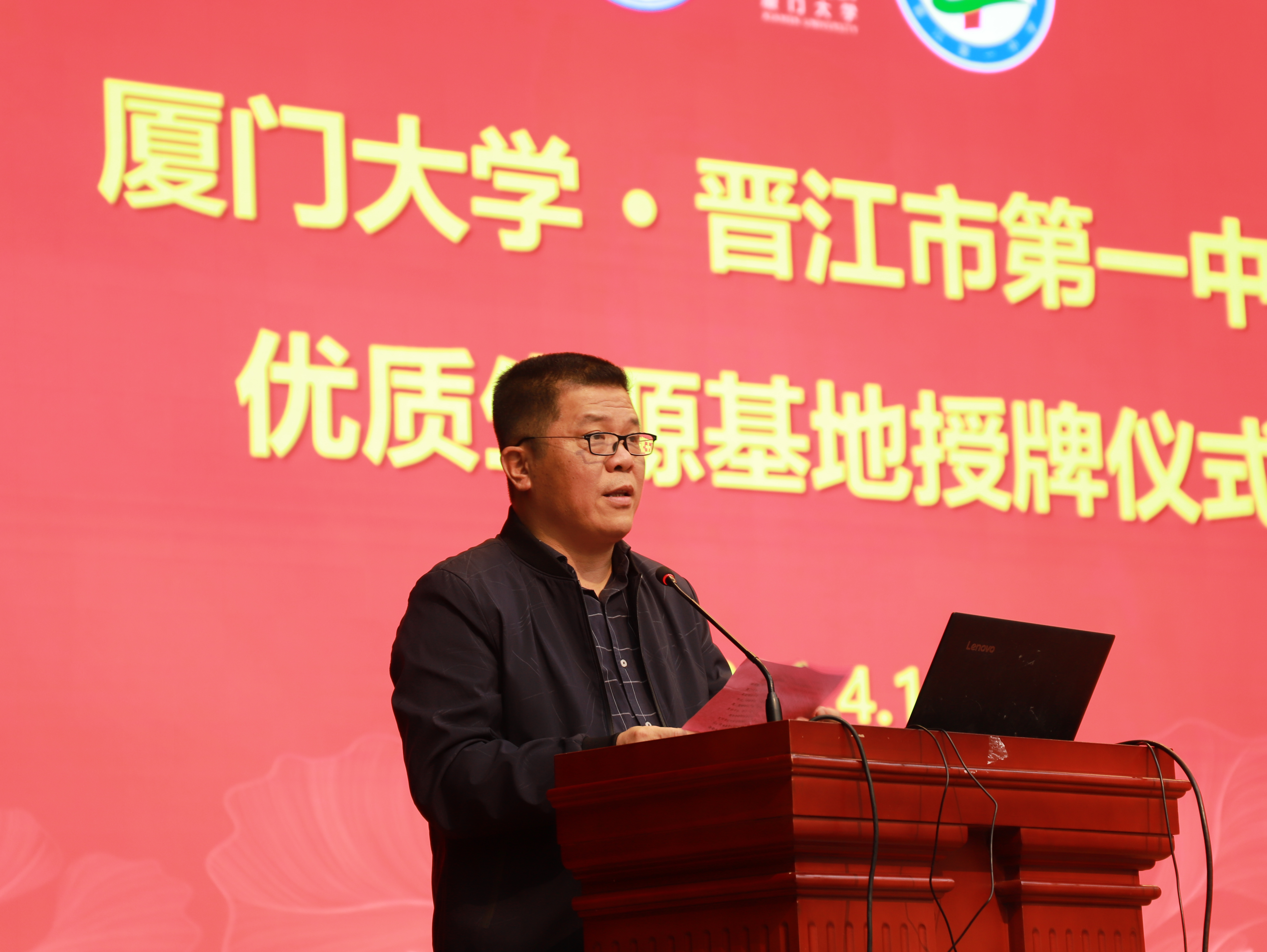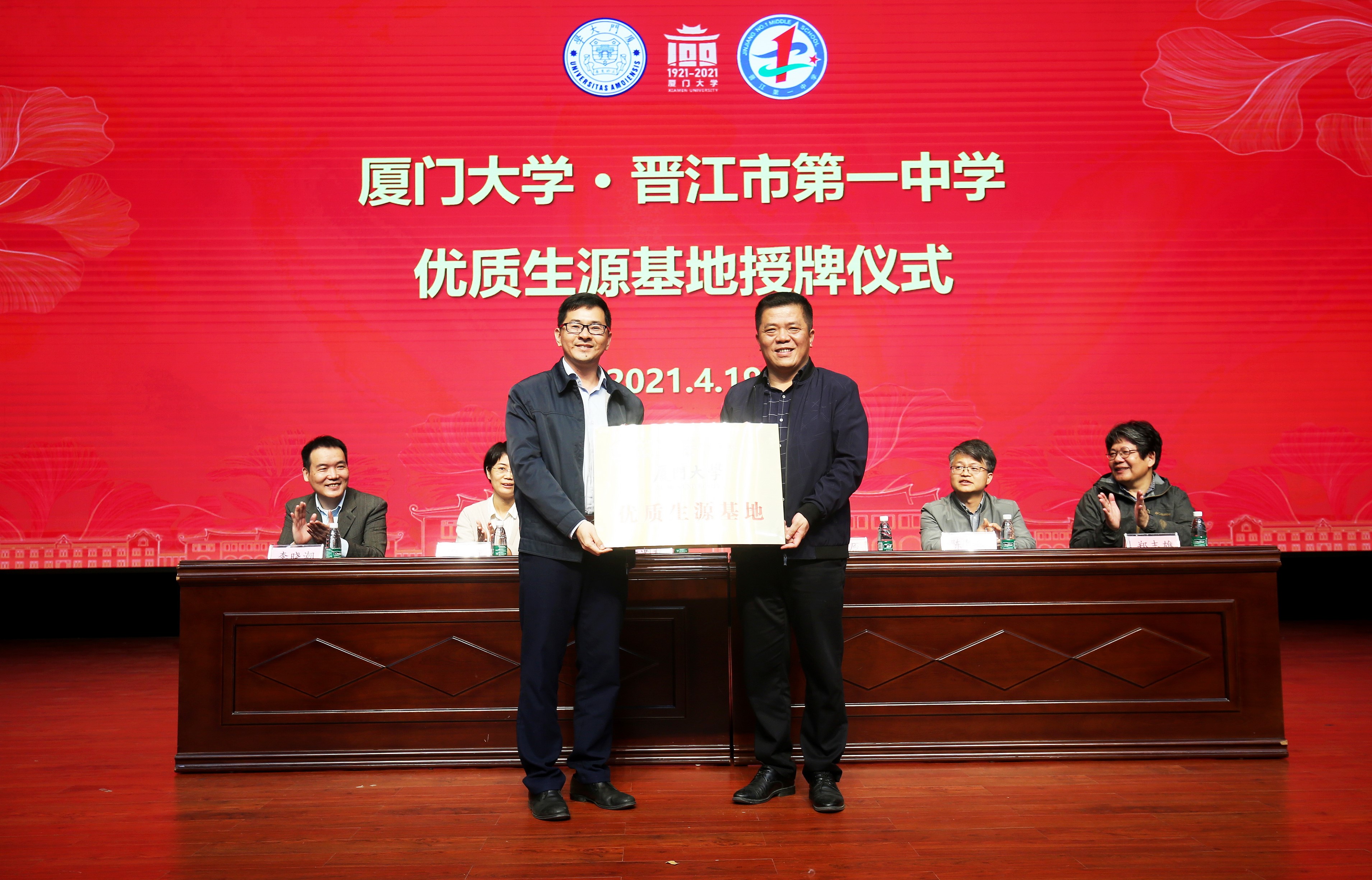 为加强千亿体育官方网站与重点生源中学的交流联系,做好优秀学生的衔接培养,建立合作共赢的长效机制,4月19日,千亿体育官方网站学生工作部(处)陈泗林副处长、电子科学与技术学院党委郑莉副书记,电子科学与技术学院李晓潮教授等一行赴晋江一中参加“千亿体育官方网站优质生源基地”授牌仪式。晋江一中校长陈燎原、副校长郑志雄等校领导及700余名学生代表出席了活动,活动由晋江一中校长助理徐谋树主持。
