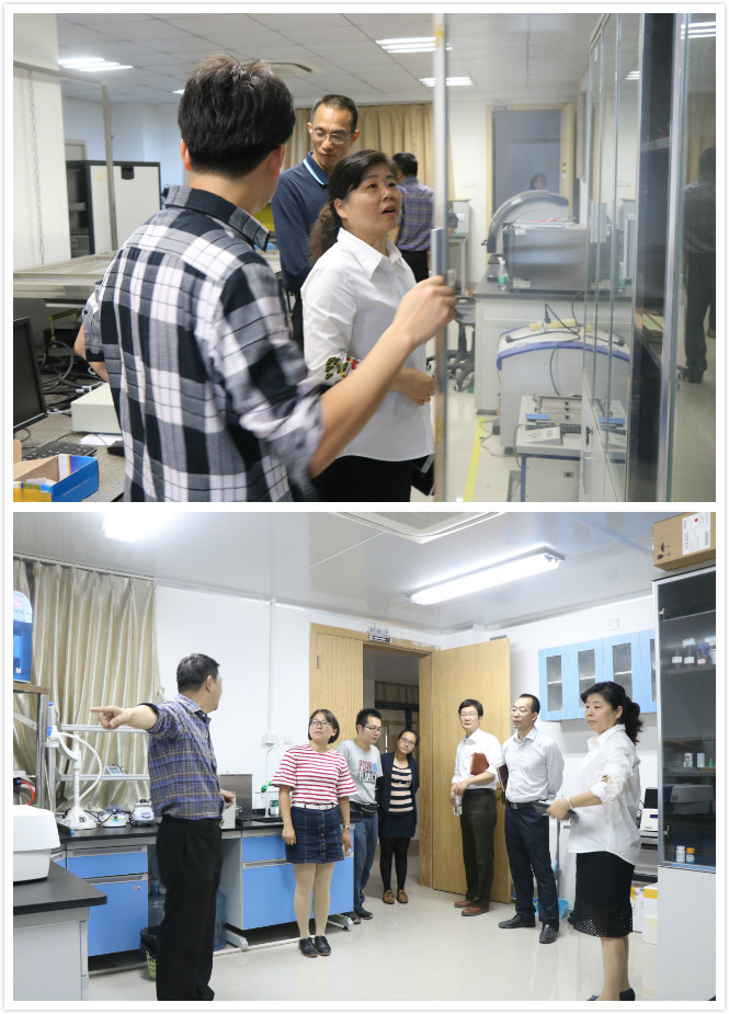 学院党政领导在参观每间研究生办公室及实验室中与学生、专业教师进行了更深入的交流。