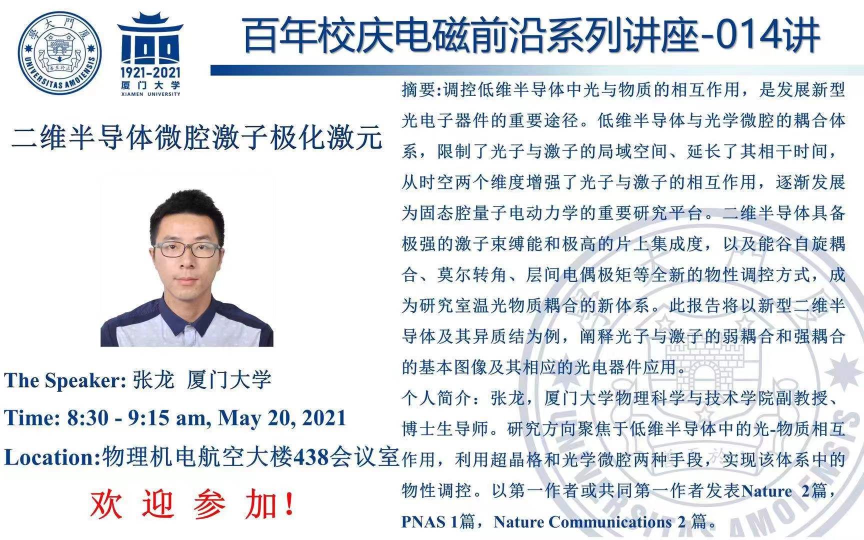 【校庆讲座】二维半导体微腔激子极化激元