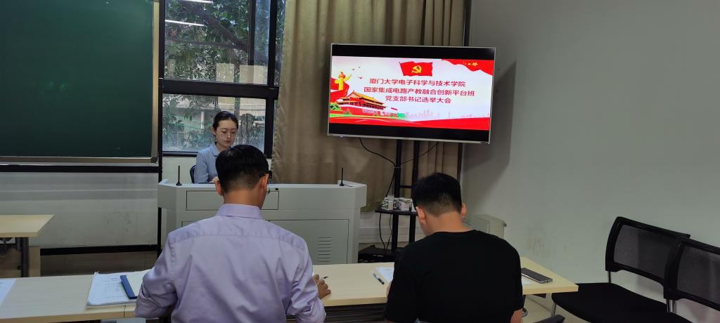 会议严格按照《中国共产党章程》、《中国共产党基层组织选举工作暂行条例》等有关规定,经无记名投票选举,肖舒文同志当选中共我院电子科学与技术学院国家集成电路产教融合创新平台班党支部书记。随后,肖舒文同志作了热情洋溢的发言。她首先对平台班的班级建设情况作了介绍,对两位党员同学加入平台班表示热烈欢迎。她表示,希望支部成员能在平台班发挥先锋模范作用,将党支部发展壮大,建设一个组织有纪律,行动听指挥,积极为同学服务的优秀党支部,以党建引领平台班的“产学研”融合发展特色。