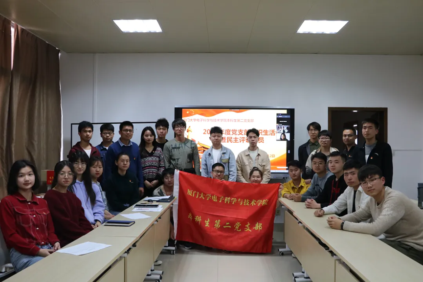 3月12日,电子科学与技术学院本科生第二党支部在科研二313召开了2020年度党支部组织生活会暨民主评议党员大会,主要内容是2020年度工作汇报、查摆支部突出问题、党员批评与自我批评、党支部委员会及党员民主测评四个环节。学院党委副书记郑莉及15名正式党员、11名预备党员参加线下会议,1名预备党员参加线上会议。