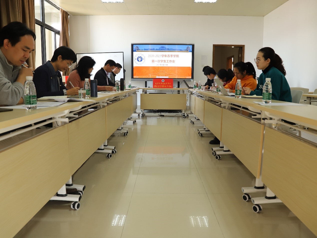 方银水副书记首先传达了近期学校关于错峰返校、学生心理健康、毕业班学生就业、防诈骗等学生工作会议精神,汇报了新一期“扬才班”学员和百年校庆学生发言代表的推荐工作,并就2020年度学生工作考评指标体系所涉及的薄弱环节进行了任务分解和工作部署。